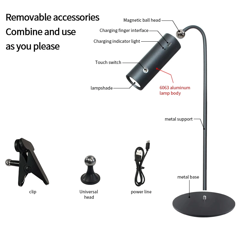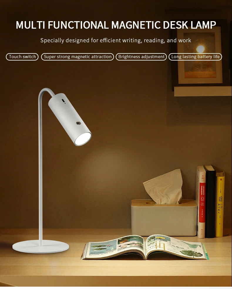 The detachable magnetic lamp head can be used as a handheld light. Easy to move or attach to metal surfaces (beds, cabinets) in dorms. - Sleek Minimalist Aesthetic