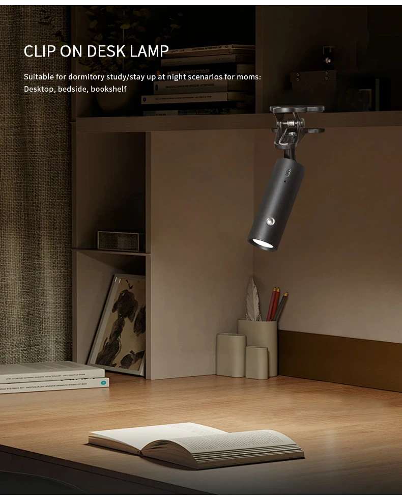 Features three modes: desktop stand, magnetic adsorption, and clip - on. Perfect for student dorms, bedside tables, or on - the - go reading—adapt to any scenario! - Tri - Color Dimmable Eye Protection